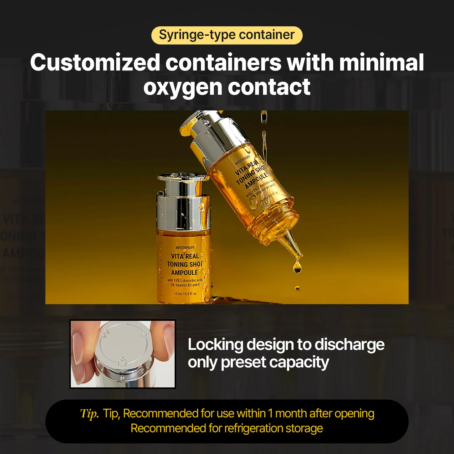Vita Real Shot Toning Ampoule is an intensive beauty treatment from Korea! Packed with pure vitamin C, this powerful ampoule helps reduce unevenness in skin tone, fighting blemishes and revealing glowing skin. Achieve healthy and radiant skin with this essential Korean skincare product.